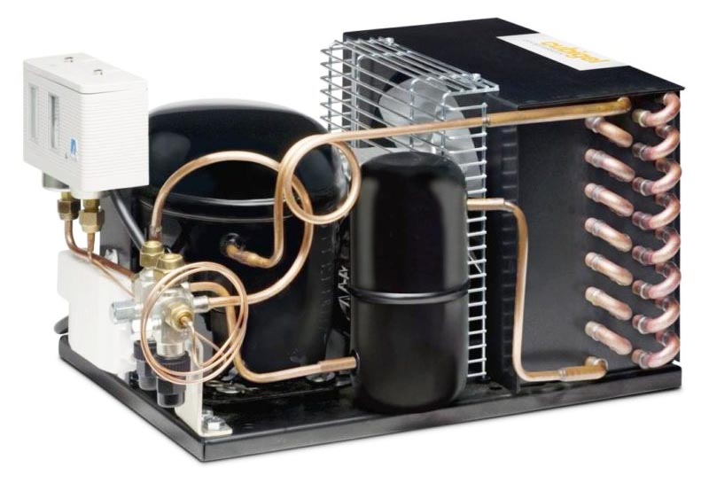 Компрессорно-конденсаторные аппараты на основе компрессоров Cubigel. Холодильный аппарат является устройством, которое объединяет на общей базе компрессор, ресивер, конденсатор, нагнетательный трубопровод, привод и комплект автоматики. Применяется он в холодильных системах, размещаемых на объектах пищевой и перерабатывающей деятельности, овощебазах, в универмагах, кафе и ресторанах. Надежные конденсаторные аппараты со множеством вариантов исполнения и наполнения могут эксплуатироваться при температуре до сорока трех градусов Цельсия, что соразмерно с условиями тропиков. Используемые хладагенты: R134a, R404A, R290, R407C, R507, R22.