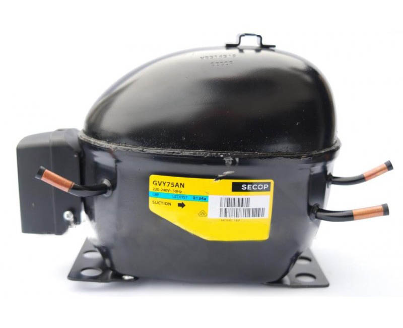 Надежный, высокопроизводительный компрессор Secop GVY75AN имеет герметичное исполнение. Асинхронный двигатель переменного тока защищен автоматическими датчиками перегрузок. Происходит отключение при критическом нарастании температур или предельных вращающих моментов. После снижения критических нагрузок происходит перезапуск компрессора.