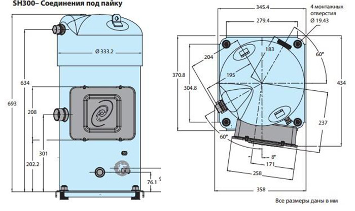 | Соединение под пайку, патрубок на нагнетание | 1 1/8″ |
