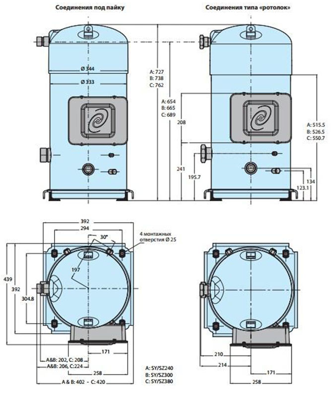 Габаритный чертеж Performer SY/SZ 240-300-380