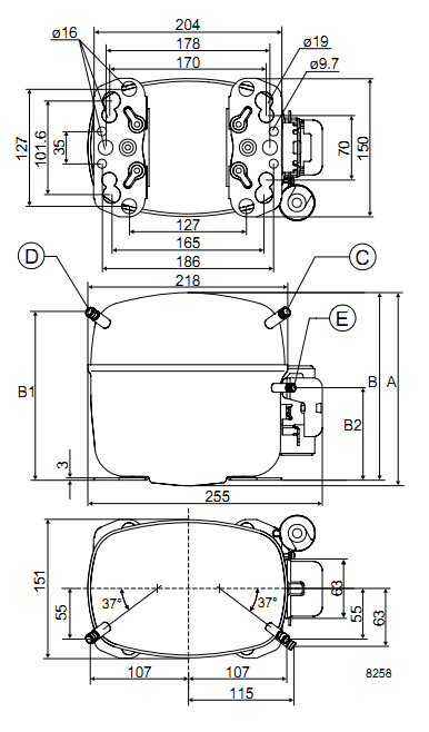 Габаритный чертёж компрессора SC15DL