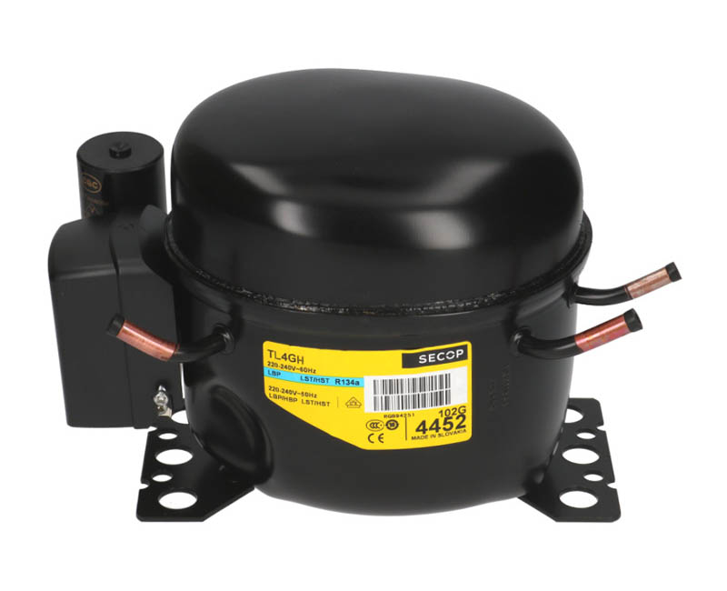 Компрессор герметичный поршневой Secop TL4GH специально оптимизирован для применения в холодильных установках малой производительности, работа которых основана на парокомпрессионном цикле, к нему относятся холодильники, холодильные прилавки, малогабаритные камеры для хранения продуктов, морозильники, камеры для замораживания, охладители жидкости. Обладает высокой холодопроизводительностью и энергосберегающим режимом.
