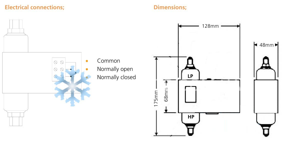 Реле FD113 осуществляет функции электрического переключателя, контролируя дифференциал давлений между двумя входами. Разрешено для применения в составе холодильных систем и систем кондиционирования, в соответствии со стандартом EN 378. Используется в качестве реле контроля смазки.