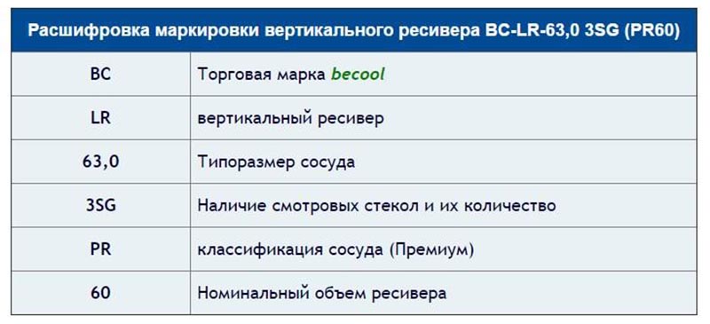 BC-LR-350,0 3SG (PR350) – вертикальный ресивер жидкого хладагента, от торговой марки Becool, из премиум линейки (PR), объем ресивера 350 литров, рабочее давление 2,8 МПа, патрубок на входе под фланец 3 1/8″, выход фланцевый запорный вентиль 3 1/8″, выход под предохранительный клапан 1/2″ NPT. Диаметр сосуда 516 мм, высота сосуда 1510 мм. Установлены три смотровых стекла.