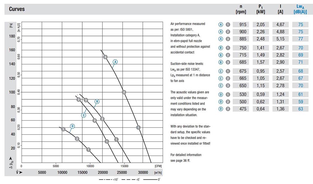 Расходная характеристика осевых вентиляторов EBMPAPST S6D910 (см. кривая “А”)